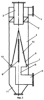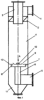 1. Пылеуловитель вихревой, содержащий цилиндрический корпус с коническим бункером и расположенным в его нижней части осевым входным патрубком, на выходе которого установлены завихритель, обтекатель и отбойная шайба, а также размещенные в верхней части патрубок для ввода вторичного потока и выходной патрубок, отличающийся тем, что завихритель выполнен жалюзийным и расположен на торцевой поверхности цилиндра, являющегося продолжением осевого входного патрубка, но имеющим больший диаметр, причем обтекатель и отбойная шайба также размещены на торцевой поверхности цилиндра.