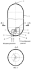 Для данной конструкции реактора характерно также неравномерное распределение газа в объеме жидкости из-за раздельного ввода реагентов (первый жидкий реагент вводится в реакционный объем нисходящей закрученной струей, второй жидкий реагент – боковой струей, направленной вдоль образующей днища, а газообразный реагент – в виде кольцевого потока всплывающих пузырей, выходящих из отверстий газораспределительного устройства), в результате чего под газораспределительным устройством и над полым конусом образуются застойные жидкостные зоны, не заполняемые пузырями. Кроме того, при больших расходах газа ввиду ограниченной эжекционной способности циклонного эжектора под польм конусом возможно образование газового мешка.