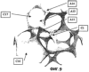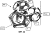 В соответствии с шестым вариантом осуществления настоящего изобретения, который показан на фигуре 11, трехмерная сеть Rxyz получена путем приближения и объединения независимых форм (P1, P16, Р17… ), имеющих, по существу, многогранную исходную форму небольшой толщины, где большинство граней F выполнены проколотыми с образованием углублений е. Многогранники (Р1… ) соединены вместе так, что они находятся в физическом контакте, таким образом, что их углубления е соединены.
