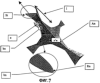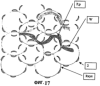 Работа генератора 1 более подробно показана на фигуре 18. Поток W струи F проходит через сеть Rxyz электростатического модуля 2 через большое количество (более 3) поочередно соединенных последовательностей, с одной стороны, полей локальных градиентов давления, grad Рn, на нижней поверхности in ребер An сети Rxyz, и с другой стороны локальных градиентов En электростатических полей на конечных кромках bn. Локальные градиенты давления grad Рn создают зоны ZPn локального воздействия, окружающие точки An действия давления. Они распределены в сети последовательно вдоль внешней поверхности потока W. Большинство из этих областей расположены на нижней поверхности in ребер An, и большая часть более крупных частиц Р осаждается здесь и прилипает в отдельных местах к материалу md под действием сил Ван-дер-Ваальса.