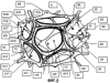 Наиболее простой способ осуществления настоящего изобретения показан на фигуре 10. Он состоит в построении трехмерной сети Rxyz путем приближения, пересечения и объединения закрытых квадратичных форм (C1, C16, С17,… ) малой толщины, в частности, сфер или эллипсоидов. Например, она может быть получена путем комбинирования между химическим действием и действием давления на пену, формируемую из пластического материала.