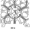 Сети Rxyz и R’xyz состоят из ячеек С со структурой, близкой к многогранной (двенадцатигранной) структуре, внутренние полости которой имеют форму удлиненной сферы (эллипсоида). Основные оси ячейки С ориентированы приблизительно в одних направлениях. Среднее отношение между размерами D11 и D12 эллипсоидов по их основным взаимно перпендикулярным осям составляет приблизительно 1,1-1,3. Ячейки расположены в соответствии с распределением их наибольшей плотности и граничат с двенадцатью соседними ячейками. Их стенки проколоты с образованием двенадцати углублений.