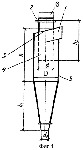 5. Циклон по п.1, отличающийся тем, что отношение высоты цилиндрической части корпуса к высоте конической части корпуса находится в оптимальном интервале величин h/h3=1,0÷1,1.