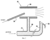 Каждое из устройств 18 распыления (фиг.1 и 2) содержит трубчатую форсунку 28, открытую с обоих концов; в основном посередине форсунки и в ее нижней точке врезан трубопровод 29, соединенный с одной из двух емкостей 17, выполненных в виде питающих резервуаров. Кроме того внутрь каждой форсунки заведен трубопровод 30 сжатого воздуха, который врезан в форсунку рядом с врезом трубопровода 29.