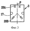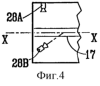 с другой стороны, двух нижних форсунок 28В, направленных под углом 45°, как при виде с торца (фиг.3), так и при виде сбоку (фиг.4), таким образом, чтобы оси обеих форсунок скрещивались на оси Х-Х внутри камеры и на некотором расстоянии от входа в последнюю;
