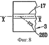 – фиг.4, 6 и 8 – схематические частичные проекции, соответствующие фиг.3, 5 и 7, с продольным сечением.