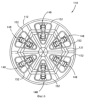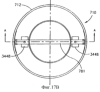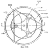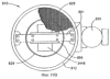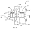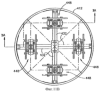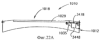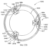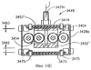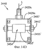 Как видно из Фиг.22В, верхние, в целом плоские, детали 1035′ кронштейнов 1035 выполнены с вырезами 1037 с тем, чтобы сделать возможным размещение в них соединителей 1081. Соединители 1081 выполнены как листовые рессоры, в общем, как описано выше, и присоединены обоими концами 1083 радиально вдоль вырезов 1037 к верхним плоским элементам 1035′ кронштейна, обычно с дистанционными шайбами 1089. Каждый соединитель 1081 несет подвешенный многочастотный преобразователь частоты, присоединенный через резьбовой элемент 3478.