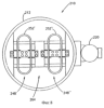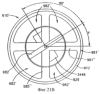 Как видно из Фиг.22В, сепаратор разделен на три предпочтительно одинаковые части несколькими участками 1011, в которых размещены интегральные многочастотные преобразователи частоты 3448. В каждом таком участке имеется угловой кронштейн 1035 (Фиг.22С) или подобный узел, который приварен, жестко присоединен болтами или каким-нибудь другим способом к основной обечайке 1012′ через подходящую стенку с накладками или подобным образом.