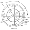 Обратимся теперь к Фиг.21В, где показан вибросепаратор 910′, который в целом подобен сепаратору, показанному и описанному выше в связи с Фиг.21 А за исключением того, что взамен первой и второй взаимно ортогональных листовых пружин 981 и 985 соответственно установлен единый упругий элемент 981′. Элемент 981′ имеет несколько секторных вырезов 982′, чтобы получить пару интегральных скрещивающихся элементов 981″ и 985″.