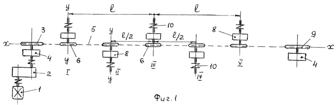 Опоры 8 звездочек 6 и 7 расположены в два параллельных относительно продольной оси хх привода ряда, а все звездочки лежат в одной продольной вертикальной плоскости. На концах валов звездочек 6, обращенных к рабочим клетям профилегибочного стана (не показан), установлены муфты 10 (например, электромагнитные), с помощью которых любой валок стана оперативно отсоединяется от привода (при необходимости).