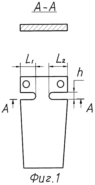 Изготавливают лопатку из сплава ЭП 718, у которой Сmах=1,8 мм, tкр=0,4 мм. Определяют ширину прорези: 4 h<4,9. Ширина прорези выбрана h=4,7 мм. При B1=10 мм и В2=15 мм, L1=6,7 мм, L2=10 мм. Перо лопатки отвечает всем требованиям чертежа.