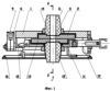 Создание прижимного усилия подвижной огнеупорной плиты 13 к неподвижной огнеупорной плите 2 происходит при заходе боковых направляющих выступов 10 каретки 11 под действием механизма 12 ее перемещения на опорные элементы 9 валов 5 – положение взведенный затвор. Усилие прижима огнеупорных плит 2 и 13 осуществляется за счет пружинного блока 7, которое передается от первых плеч рычагов 6 через валы 5, вторые плечи рычагов – оси 8, опорные элементы 9 на каретку 11.