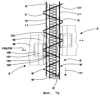 16. Установка по одному из пп. 9-15, отличающаяся тем, что транспортное устройство (16) для сетчатых матов и транспортное устройство (35) для строительных элементов содержат соответственно, по меньшей мере, две пары подающих элементов (17, 17’; 18, 18’) и транспортирующих элементов (36, 36’; 37, 37’), причем отдельные элементы всех пар противоположны друг другу с обеих сторон технологического канала (2).