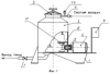 Пенобетоносмеситель работает следующим образом. Пенобетонная смесь создается под давлением 0,65 кг/см2. Перед началом работы включают привод вала. В баросмеситель 2 подается вода с пенообразователем и при преремешивании добавляют сухие компоненты смеси, которые попадают под лопасти активатора 6, установленные на вращающемся валу 9 электродвигателя 5. После этого закрывается крышка 3 баросмесителя 2, подается из магистрали 4 сжатый воздух под давлением 0,65 кг/см2 и происходит интенсивное перемешивание смеси при повышенном давлении. После завершения процесса приготовления смеси открывается запорный кран разгрузочного устройства 7 и происходит выгрузка готовой смеси. Затем весь процесс повторяется. Контроль за давлением осуществляется с помощью предохранительного клапана 10. При избыточном давлении груз, закрывающий выходное отверстие клапана, поднимается и через него идет сброс воздуха, а также одновременно происходит естественная прочистка клапана.