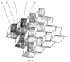 На втором этапе из заготовки с выполненными на ней канавками или отверстиями формообразуют зигзагообразную гофрированную структуру. При этом линии изгиба образуются по канавкам либо по местам пробивки отверстий, определяющим положение зигзагообразных и пилообразных линий структуры. В результате получаем объемную конструкцию заполнителя складчатого типа – Фиг.1.