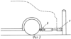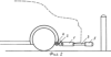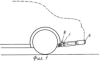 В другом случае, когда амортизирующий бампер 6 касается препятствия, а автомобиль продолжает на него свое движение (скользское дорожное покрытие), бампер через штоки 2 и 3, скользящие в направляющих муфтах 7, и упираясь в задние колеса роликами 4, сжимают пневмоцилиндры 5 (Фиг.3), в результате “смягчается” удар автомобиля о препятствие.