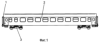 Для замены колесных пар буксовое подвешивание тележки оборудовано устройством, состоящим из скобы 18 (фиг.3), имеющей отверстия для болтового соединения 19 с рычагом 20, у которого один конец опирается на буксу 17, а второй шарнирно соединен с боковой балкой 7.