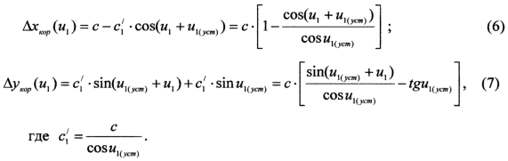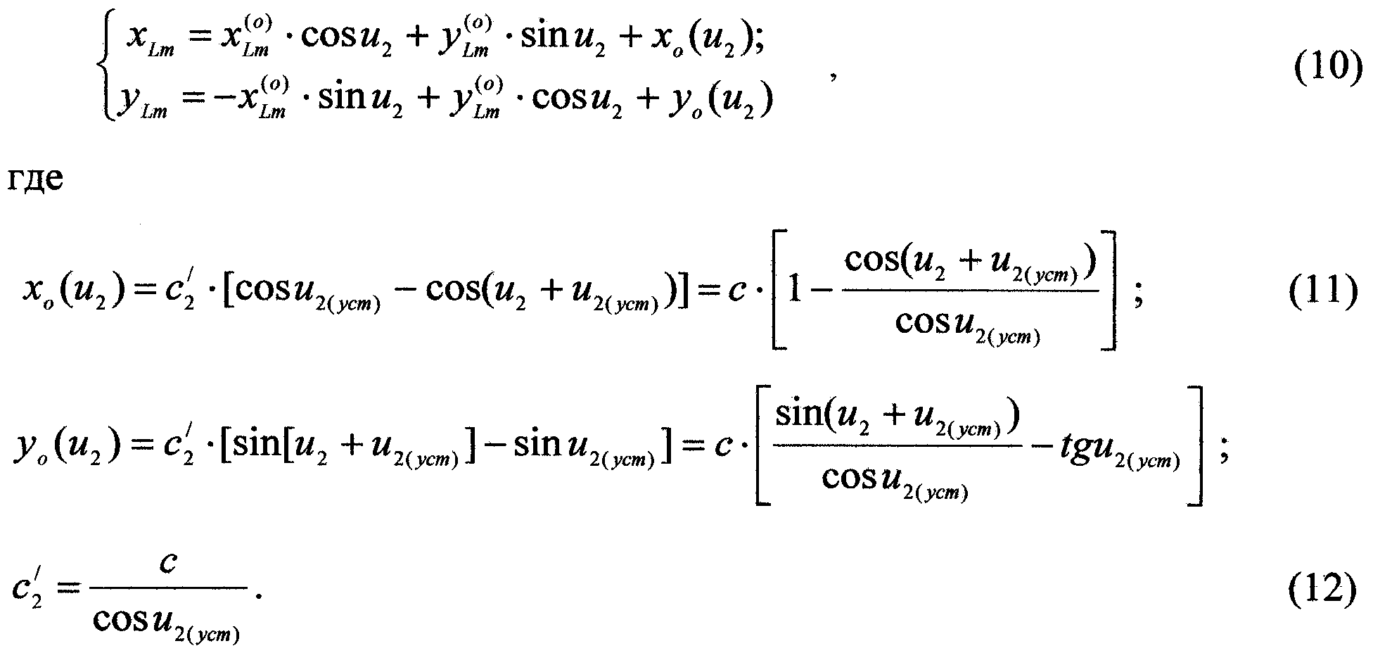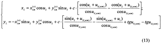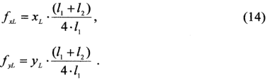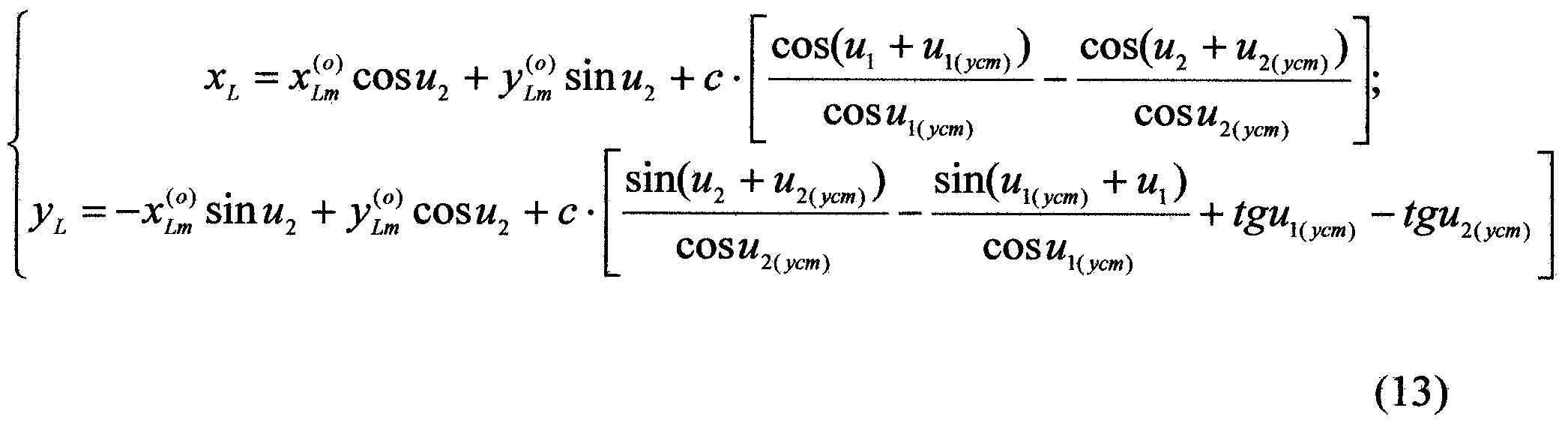 Таким образом, зная величины c, u1(уст), u2(уст) исходных конструктивных параметров, а также текущие значения углов u1 и u2, определяемые с помощью датчиков уровня первой и второй тележек, по формулам (6-12) рассчитываются значения измеряемых величин хL, yL.