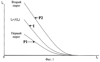 На фиг.1 приведены зависимости тока приемного конца от тока питающего при изменении сопротивления изоляции от 0 до 6 Ом·км, в отсутствие шунта кривая I, первый порог кривая Р1 и второй порог P1.