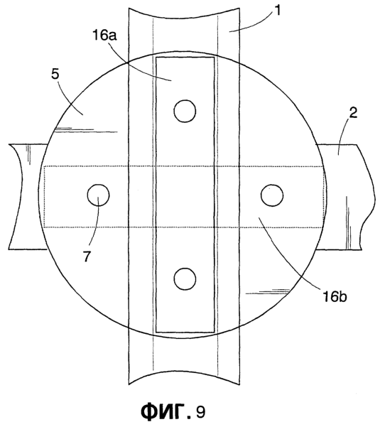 Фиг.8 – вид сверху принципа предпочтительной компоновки крепления;