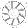 Каждая лопасть 3 закручена относительно оси 8, проходящей через середины местных хорд вдоль размаха лопасти 3.