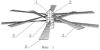 Втулки 2 с лопастями 3 приводятся во вращение валом 1 от двигателя, создавая аэродинамические силы и моменты, приводящие в движение транспортное средство.