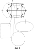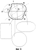Во втором варианте образования контура направляющей ABCDEF, показанном на фиг.3, эллипс и прямоугольник совмещены так, что большая ось эллипса и большая сторона прямоугольника расположены под углом 45° друг к другу, а радиус круга равен половине большей стороны прямоугольника. При этом в образовании контура ABCDEF участвуют только те части контура какой-либо из указанных условных фигур, которые расположены за пределами площадей двух других упомянутых условных фигур. Конкретно, в образовании контура ABCDEF участвуют части АВ и DE контура условного прямоугольника, которые выходят за пределы площади условного круга и площади условного эллипса, части ВС и EF контура условного эллипса, которые выходят за пределы площади условного круга и площади условного прямоугольника, а также части FA и CD контура условного круга, которые выходят за пределы площади условного прямоугольника и условного эллипса. Таким образом, во втором варианте образования контура направляющей ABCDEF принимают участие части контуров всех трех упомянутых условных фигур.