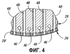 Верхний формующий элемент 28 узла 24 формирования предпочтительно имеет отверстия 48, к которым подают импульс разрежения от резервуара 50, находящегося под разрежением, посредством трубопровода 52, при этом управление подачей импульсов осуществляется с помощью клапана 54. Этот импульс разрежения способствует процессу формирования между верхним формующим элементом 28 и нижним кольцом 34 в соответствии с описанием патента США 5376158, выданного на имя Shetterly и др., все описание которого настоящим включено в данную заявку путем ссылки.