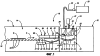 Как также показано на фиг.1, установка 10 для формирования листов стекла содержит нижнее кольцо 34, которое выполнено с возможностью перемещения в горизонтальном направлении, как показано стрелками 36, и имеет обращенную вверх формующую поверхность 38, периферия которой по своей конструкции в основном соответствует периферии листа G стекла, подлежащего формированию. Первый исполнительный механизм 40 “начинает” цикл изменения формы листа стекла путем перемещения нижнего кольца 34 в горизонтальном направлении в первое положение, показанное сплошными линиями, внутри камеры 14 нагрева печи 12, где нижнее кольцо принимает горячий лист стекла от транспортирующего устройства 20 верхнего расположения при прекращении удерживания листа при прекращении “подвода” разрежения. После этого первый исполнительный механизм 40 обеспечивает перемещение нижнего кольца 34 наружу из печи 12 во второе положение, показанное штрихпунктирными линиями, на узле 24 формирования под верхним формующим элементом 28. Затем второй исполнительный механизм 42 обеспечивает перемещение верхнего формующего элемента 28 вниз в направлении нижнего кольца 34, находящегося во втором положении, для взаимодействия с нижним кольцом при формировании горячего листа стекла, и впоследствии верхний формующий элемент смещают обратно вверх в верхнее положение при подготовке к следующему циклу.