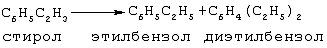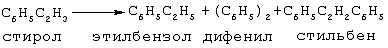 2. При наличии стирола в сырье для дегидрирования под воздействием высоких температур в некаталитических зонах реакции по свободнорадикальному механизму происходит образование примесей, наличие которых отрицательно влияет на качество товарного стирола: