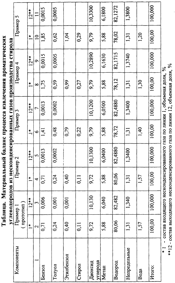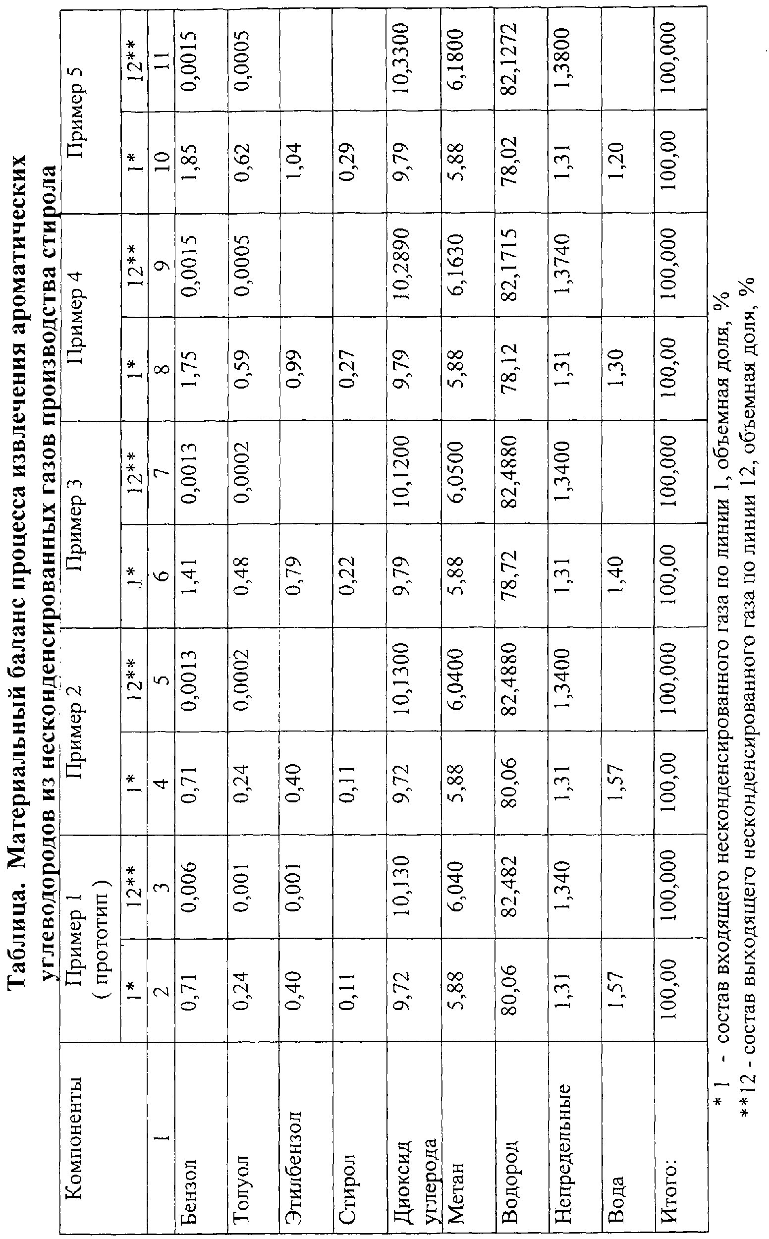 После выделения объемная доля ароматических углеводородов в несконденсированном газе в линии 12 составляет 0,0015% (таблица).