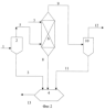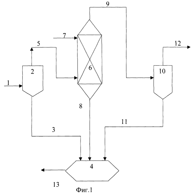 Несконденсированные углеводороды из каплеотбойника 10 по линии 12 направляются или на сжигание – используются как топливо, или для выделения водорода. Выделенные углеводороды из отбойника 10 по линии 11 поступают в сборник 4. Ароматические углеводороды и вода из сборника 4 по линии 13 подаются на производство дивинилбензола.
