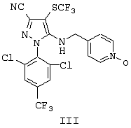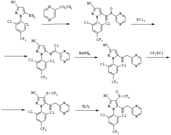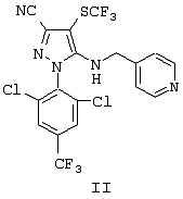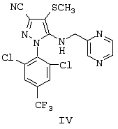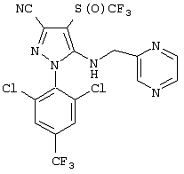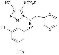 4. 1-(2,6-Дихлор-4-трифторметилфенил)-4-фторметилтио-5-(пиразин-2-илметиламино)пиразол-3-карбонитрил и 1-(2,6-дихлор-4-трифторметилфенил)-4-трифторметилсульфинил-5-(пиразин-2-илметиламино)пиразол-3-карбонитрил.