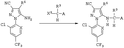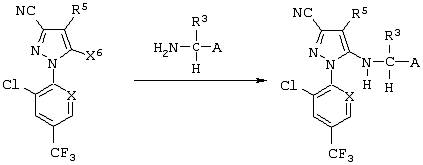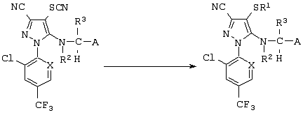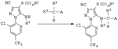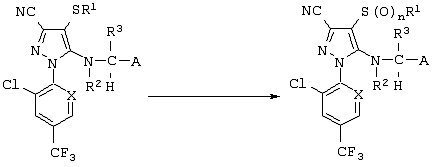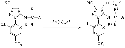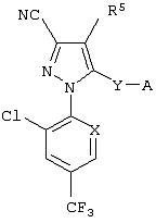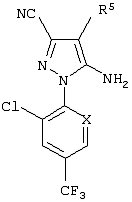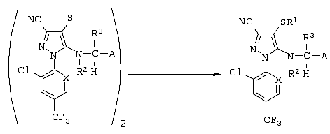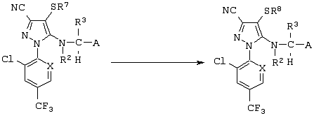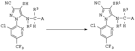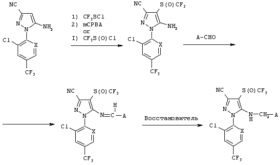 Из сочетаний вышеуказанных заместителей наиболее предпочтительными соединениями являются 1-(2,6-дихлор-4-трифторметилфенил)-4-фторметилтио-5-(пиразин-2-илметиламино)-пиразол-3-карбонитрил и 1-(2,6-дихлор-4-трифторметилфенил)-4-трифторметилсульфинил-5-(пиразин-2-илметиламино)пиразол-3-карбонитрил.