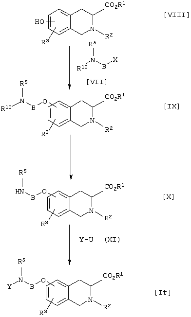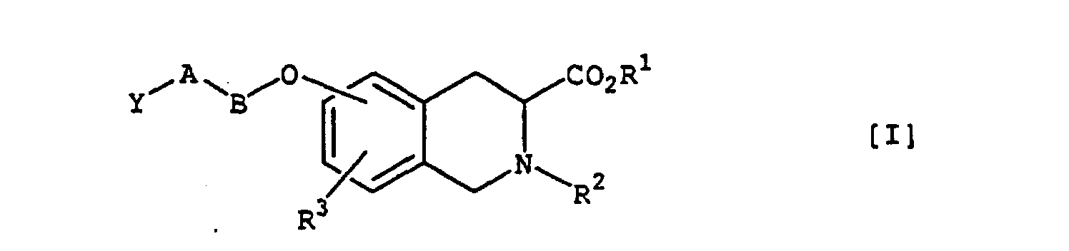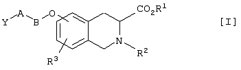 1. Производные тетрагидроизохинолинов формулы [I] где R1 представляет собой атом водорода или низший алкил, R2 представляет собой алкил, необязательно имеющий заместитель, выбранный из алкоксикарбонила и карбокси, циклоалкил, циклоалкилалкил, арил, необязательно имеющий заместитель, выбранный из низшего алкила, арилалкил, необязательно имеющий заместитель, выбранный из низшего алкила, низшего алкокси, атома галогена и ацила, алкенил, алкинил, или моноциклический гетероциклилалкил где указанный гетероцикл включает 5- или 6-членное кольцо, содержащее атом азота, и необязательно имеет заместитель, выбранный из низшего алкила, R3 представляет собой атом водорода или низший алкокси, А представляет собой прямую связь или >N-R5, где R5 представляет собой низший алкил, В представляет собой низший алкилен, и Y представляет собой арил или моноциклический или конденсированный гетероциклил, содержащий, по меньшей мере, один гетероатом, выбранный из атома кислорода и атома азота, и необязательно имеющий заместитель, выбранный из низшего алкила, карбокси, арила, алкенила, циклоалкила и тиенила, или его фармацевтически приемлемая соль. 2. Производное тетрагидроизохинолина по п.1, где в формуле [I] R1 представляет собой атом водорода или низший алкил, R2 представляет собой алкил, необязательно имеющий заместитель, выбранный из алкоксикарбонила и карбокси, циклоалкил, циклоалкилалкил, арил, необязательно имеющий заместитель, выбранный из низшего алкила, арилалкил, необязательно имеющий заместитель, выбранный из низшего алкила, низшего алкокси, атома галогена и ацила, R3 представляет собой атом водорода или низший алкокси, А представляет собой прямую связь или >N-R5, где R5 представляет собой низший алкил, В представляет собой низший алкилен, и Y представляет собой арил или моноциклический или конденсированный гетероциклил, содержащий, по меньшей мере, один гетероатом, выбранный из группы, включающей атом кислорода и атом азота, и необязательно имеющий заместитель, выбранный из низшего алкила, карбокси, арила, алкенила, циклоалкила и тиенила, или его фармацевтически приемлемая соль. 3. Производное тетрагидроизохинолина по п.1, где в формуле [I] R1 представляет собой атом водорода или низший алкил, R2 представляет собой алкил, циклоалкилалкил, арилалкил, необязательно имеющий заместитель, выбранный из низшего алкила, низшего алкокси, атома галогена и ацила, алкенил, алкинил или гетероциклалкил, R3 представляет собой атом водорода или низший алкокси, А представляет собой прямую связь или >N-R5, где R5 представляет собой низший алкил, В представляет собой низший алкилен, и Y представляет собой арил или моноциклический или конденсированный гетероциклил, содержащий, по меньшей мере, один гетероатом, выбранный из группы, включающей атом кислорода и атом азота, и необязательно имеющий заместитель, выбранный из низшего алкила, карбокси, арила, алкенила, циклоалкила и тиенила, или его фармацевтически приемлемая соль. 4. Производное тетрагидроизохинолина по п.1, где в формуле [I] R1 представляет собой атом водорода или низший алкил, R2 представляет собой алкил, циклоалкилалкил и арилалкил, необязательно имеющий заместитель, выбранный из низшего алкила, низшего алкокси, атома галогена и ацила, R3 представляет собой атом водорода, А представляет собой прямую связь или >N-R5, 