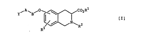 Изобретение относится к новым производным тетрагидроизохинолинов формулы [I] где R1 представляет собой атом водорода или низший алкил, R2 представляет собой алкил, необязательно имеющий заместитель, выбранный из алкоксикарбонила и карбокси, циклоалкил, циклоалкилалкил, арил, необязательно имеющий заместитель, выбранный из низшего алкила, арилалкил, необязательно имеющий заместитель, выбранный из низшего алкила, низшего алкокси, атома галогена и ацила, алкенил, алкинил, или моноциклический гетероциклилалкил, где указанный гетероцикл включает 5- или 6-членное кольцо, содержащее атом азота, и необязательно имеет заместитель, выбранный из низшего алкила,R3 представляет собой атом водорода или низший алкокси, А представляет собой прямую связь или >N-R5, где R5 представляет собой низший алкил, В представляет собой низший алкилен, и Y представляет собой арил или моноциклический или конденсированный гетероциклил, содержащий, по меньшей мере, один гетероатом, выбранный из атома кислорода и атома азота, и необязательно имеющий заместитель, выбранный из низшего алкила, карбокси, арила, алкенила, циклоалкила и тиенила, или к его фармацевтически приемлемой соли. Изобретение также относится к фармацевтической композиции, обладающей гипогликемическим и гиполипидемическим действием, на основе этих производных. Технический результат – получение новых соединений и фармацевтических средств на их основе, а именно гипогликемическое средство, гиполипидемическое средство, средство, повышающее инсулинорезистентность, терапевтическое средство для лечения диабета, терапевтическое средство против осложнения при диабете, средство, повышающее толерантность к глюкозе, средство против атеросклероза, средство против ожирения, противовоспалительное средство, средство для профилактики или лечения PPAR-опосредованного заболевания и средство для профилактики или лечения синдрома X. 3 н. и 10 з.п. ф-лы, 7 табл.