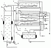 Нагрев нефти в емкости 1 продолжается до температуры ~360°С, после чего отключается нижний пояс нагрева 3 и включается пояс 2, за счет которого верхний слой образовавшегося мазута нагревается до температуры ~410°С. По окончании отбора дизельных фракций из емкости 5 паровая фаза из емкости 1 конденсируется преимущественно в первом змеевике емкости 6 и при открытом кране поступает в емкость 9.