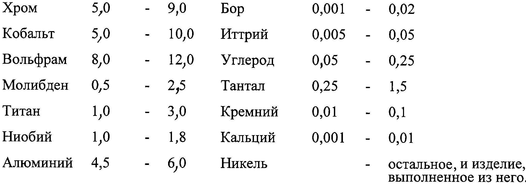 Изделия, получаемые из предлагаемого сплава, обладают высокими технологическими свойствами, жаропрочностью и жаростойкостью.