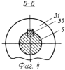 Кулачки 6 и 7 снабжены отверстиями по форме вала 5 и шпонки 31 (на фигуре 3 показано отверстие 35 в кулачке 6), позволяющие устанавливать кулачки на вал при установленной в пазу вала 5 шпонке 30. Аналогичные отверстия выполнены в шайбах 31. Кулачки 6 и 7 расположены на валу 5 в местах, где в теле шпонки 30 выполнены впадины заподлицо с поверхностью вала 5. Шайбы 31 расположены на валу 5 в местах, где тело шпонки 30 выступает из вала.