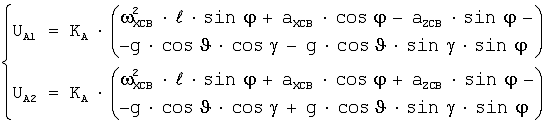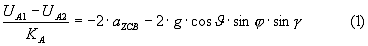 Выходные сигналы с акселерометров А1 и А2 характеризуются системой уравнений: