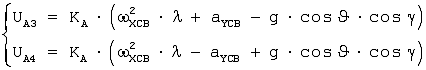 Выходные сигналы с акселерометров A3 и А4 характеризуются системой уравнений: