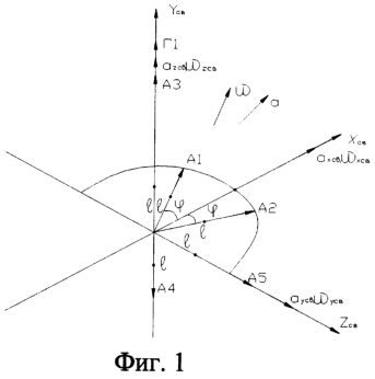 Ось чувствительности акселерометра А5 параллельна оси zсв и направлена в положительном направлении оси zсв. Сигнал с акселерометра содержит информацию об угловой скорости вокруг оси Yсв, направленной в положительном направлении оси Yсв, и линейном ускорении, действующем по оси zсв.