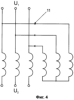 На фиг.1 представлен общий вид предлагаемого аксиального индукционного регулятора в разрезе, на фиг.2 – сечение А-А фиг.1, на фиг.3 – сечение В-В фиг.2, на фиг.4 – схема соединения обмоток аксиального индукционного регулятора, на фиг.5 – ЭДС и токи в одной обмотке, на фиг.6 – векторная диаграмма.