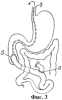 на фиг.2 приведена схема продолжения первого этапа операции – наложение межкишечного анастомоза по Ру (г) и формирование концевой энтеростомы (б) с внутрикишечной трубкой (д) (а – приводящий конец кишки, в – назо-дуоденальный зонд);