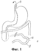 на фиг.1 приведена схема первого этапа операции – пересечение тощей кишки (а – приводящий конец тощей кишки, б – отводящий конец тощей кишки, в – назо-дуоденальный зонд, г – место пересечения тощей кишки);