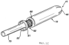 Типичные размеры каждого трубчатого вставного и выталкивающего элементов включают длину от приблизительно 50 до приблизительно 100 мм, диаметр от приблизительно 8 до приблизительно 16 мм и толщину от приблизительно 0,4 до приблизительно 0,6 мм. Предпочтительно, диаметр выталкивающего элемента 70 меньше диаметра трубчатого вставного элемента 10, что, как показано на фиг.1, позволяет получить их телескопическое размещение.