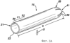 Что касается фиг.1C, то после удаления отдельных участков 50 вторую область 31 сжимают до образования выемки 62, заданной заплечиками 60 и 61, занимающими промежуточное положение между второй областью 31 и соответственно каждой из первой области 30 и третьей области 32. Совместно эти заплечики 60 и 61 создают в двух направлениях сопротивление скольжению указательного/большого пальца. Как показано на фиг.1В, прикладывая ко второй области 31 силу N, направленную по нормали, или прикладывая совместно осевую силу А к трубчатому вставному элементу 10 и силу N, направленную по нормали, ко второй области 31, можно сжать вторую область 31. Сжатая вторая область 31 после этого имеет периметр, который меньше периметра первой области 30 и третьей области 32. Использованный в описании и в формуле изобретения термин “периметр” относится к размеру вокруг конструкции, измеряемому и определяемому в плоскости, перпендикулярной к продольной оси заготовки или вставного элемента. Это измерение можно осуществлять внутри или снаружи конструкции.