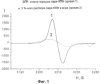 На Фиг.1 изображен спектр электронного парамагнитного резонанса (ЭПР-спектр) молекулы натриевой соли поли(пара-дигидроски-пара-фенилен)тиосульфокислоты (пара-НПФ). Кривая 1 представляет собой ЭПР-спектр порошка пара-НПФ, а кривая 2 – ЭПР-спектр, полученный при 20-кратном разбавлении пара-НПФ водой (ЭПР-спектр 5%-ного водного раствора пара-НПФ).