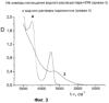 На Фиг.3 представлены УФ-спектры растворов пара-НПФ (кривая 3) и гидрохинона (кривая 4) в воде. Гидрохинон можно рассматривать в качестве модельного соединения для элементарного звена пара-НПФ. Два слабо выраженных пика в области 45000 и 33000 см-1, наблюдаемые в спектре пара-НПФ, смещены в более низкочастотную область по сравнению с характерными полосами поглощения гидрохинона 45200 и 32780 см-1. Подобное смещение, а также непрерывное поглощение образца от ультрафиолетовой (УФ-) до видимой области спектра свидетельствует об эффективном сопряжении в синтезированном продукте.