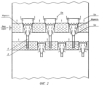 Это достигается тем, что в распределительно-контактном устройстве, включающем распределительную тарелку, снабженную полотном с отверстиями, переливными патрубками, переливными устройствами и перфорированными усеченными конусами, перфорированные усеченные конусы выполнены из листа толщиной не более 1 мм, с жалюзийными щелями шириной S, равной 0,3-0,5 мм, с шагом, равным не более толщины листа, с наклоном в сторону движения жидкости под углом , равным 30-45°, отношением длины 1 к ее ширине S от 13 до 25, направлением жалюзийных каналов к горизонтальной оси координат под углом , равным 30-45°, и сливные патрубки, присоединенные к малому диаметру усеченного конуса, на выходе из которых на расчетном расстоянии установлены распылительные шайбы, при использовании устройства в насадочных колоннах. В тарельчатых колоннах жидкость из сливных патрубков на нижележащее полотно поступает через гидрозатвор.